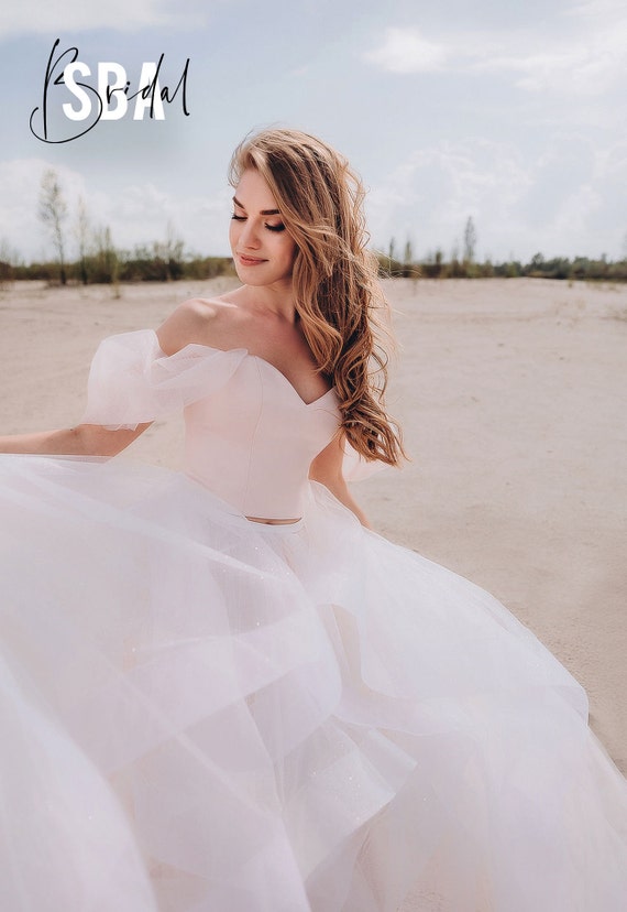 Aura Puff Sleeve Wedding Dress Fairy Tale Horsehair Trim Etsy Hong Kong